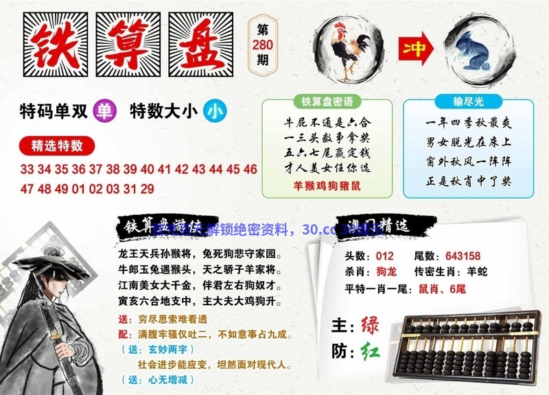 280期:前后中特▮前肖前肖▮开:鼠42准